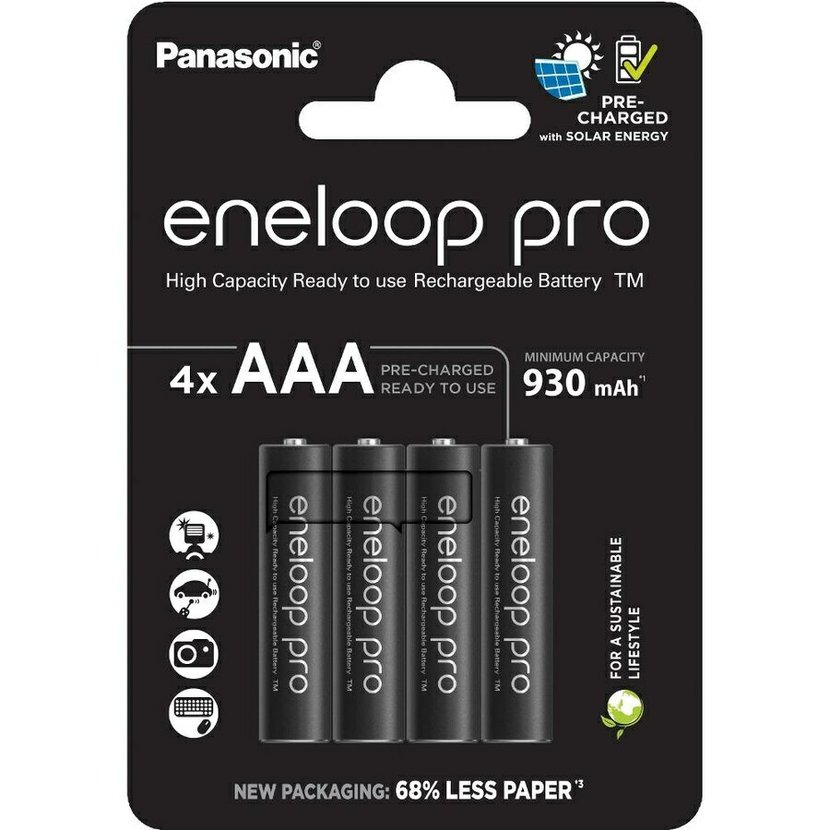 Dobíjecí baterie Panasonic Eneloop PRO AAA 930mAh jsou ideální volbou pro zákazníky, kteří hledají výkonné baterie do fotoaparátů, blesků, herních ovladačů, bezdrátových myší, klávesnic a dalších elektronických zařízení. Model BK-4HCDE/4BE nabízí vysokou kapacitu, nízké samovybíjení, spolehlivý provoz i při nízkých teplotách a dlouhou životnost v každodenním používání.