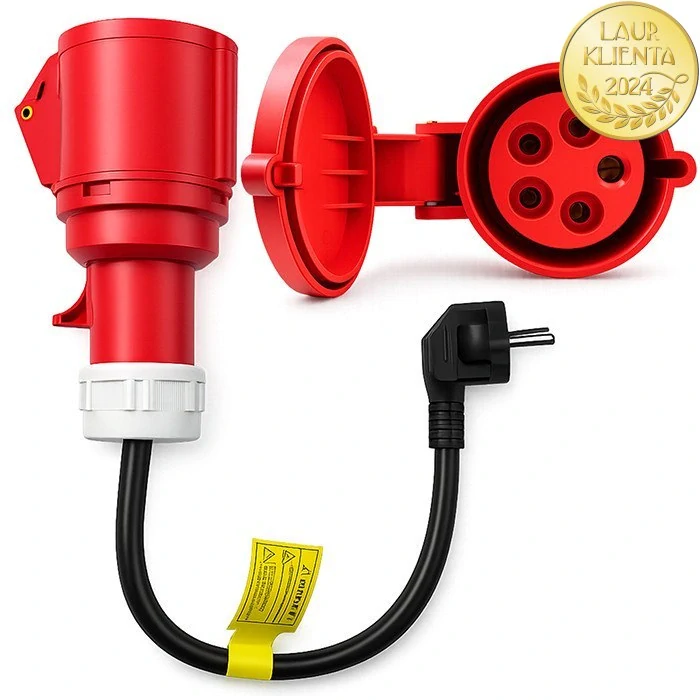 Profesionální napájecí adaptér umožňuje napájet jednofázová zařízení 230 V z průmyslové zásuvky CEE 32A (400 V). Adaptér využívá jednu fázi z třífázové instalace a poskytuje výstupní napětí 230 V. Tento praktický adaptér je vhodný pro technické, servisní a dílenské aplikace nebo pro mobilní nabíječky elektromobilů (EV) 230 V.