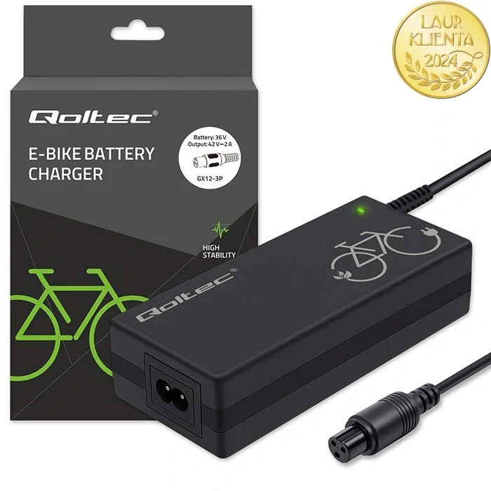Nabíječka Qoltec 42 V / 2 A pro elektrokola s 36 V baterií je spolehlivé řešení pro bezpečné a efektivní nabíjení Li-ion baterií e-bike. Nabíječka je vybavena konektorem GX12-3pin, automatickou regulací nabíjení a LED indikací stavu nabíjení. Díky kompaktním rozměrům a robustní konstrukci je ideální jak pro domácí použití, tak i pro nabíjení na cestách.