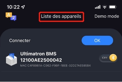 Můžete aktualizovat nejnovější verzi Ultimatron France APP a poté postupovat podle pokynu níže... - pokud se Vám nepodařilo se spojit s baterií.